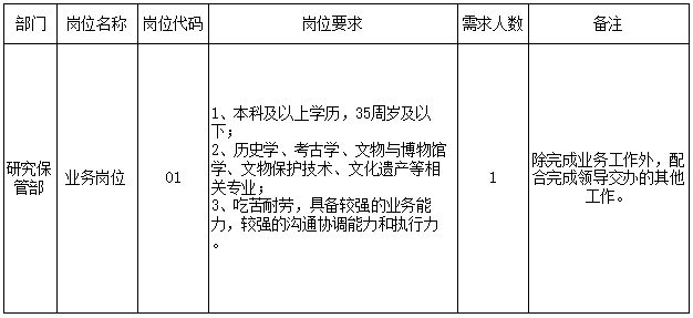 因工作需要,外企德科人力資源服務安徽有限公司擬公開招聘派駐合肥市文物保護中心工作人員1名,現將有關事宜公告如下: