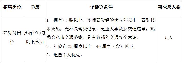 現因2019年度合肥市市場監(jiān)督管理局根據工作需要和合肥市市場監(jiān)督管理局政府購買駕駛員崗位服務控制數空缺情況,面向社會公開招聘政府購買駕駛員崗位工作人員5名。